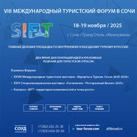 С 18 по 19 ноября 2025 года в городе-курорте Сочи состоится Международный туристский Форум SIFT - одна из важнейших деловых площадок по внутреннему и въездному туризму в России.